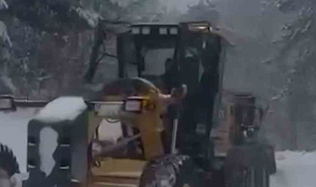 Bolu'nun Mengen ilçesinde etkili olan kar yağışı sonrası köy yollarında ulaşımın aksamaması için çalışma yürütülüyor.