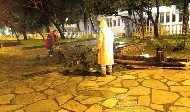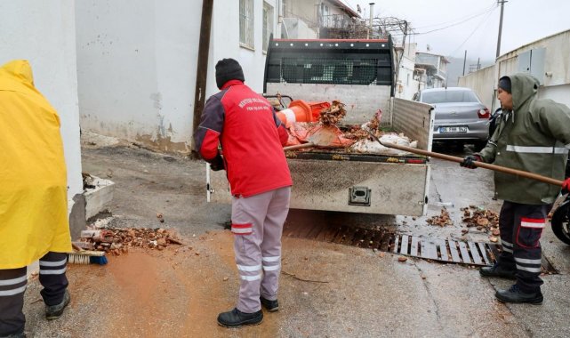 Akşam saatlerinden itibaren etkisini artıran kuvvetli yağış ve rüzgar nedeniyle ekipler, 24 saat esasına göre çalışmalarını sürdürdü. İlçe genelinde oluşabilecek su baskınlarının önüne geçmek amacıyla mazgallar temizlendi, su birikintileri kısa sürede tahliye edilerek, yağmur sularının tahliyesi sağladı. Riskli bölgelerde önleyici tedbirler alınırken, muhtemel olumsuzluklara karşı ekipler sahada hazır bulundu. Şehir merkezinde dolu yağışı nedeniyle mazgallar önünde oluşan birikmelere anında müdahale edilirken, Sınırsızlık Meydanı'nda devrilen ağaç da ekipler tarafından kaldırıldı. Emirbeyazıt Mahallesi Kolejler Bölgesi'nde, yağış nedeniyle üst kaplama çalışması yapılan yolda oluşan bozulmalar giderilerek zemin iyileştirme çalışmaları yapıldı. Kiramettin Mahallesi'nde aşırı yağış nedeniyle çöken yol sabah saatlerinde belediye ekiplerince yeniden yapılarak zemin iyileştirildi.