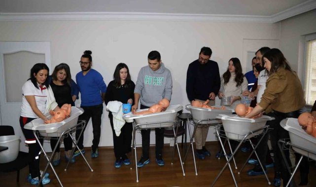 Gebe Okulu'nda Menteşe Belediyesi personeli bebek hemşiresi tarafından anne adayları ve babalara; yeni doğan bebeğin yıkanması, göz -burun - göbek bakımı, alt değişimi, bebek giydirilmesi, bebek masajı, güvenli tutuş ve bebeğin gazını çıkarma konularında eğitim veriliyor