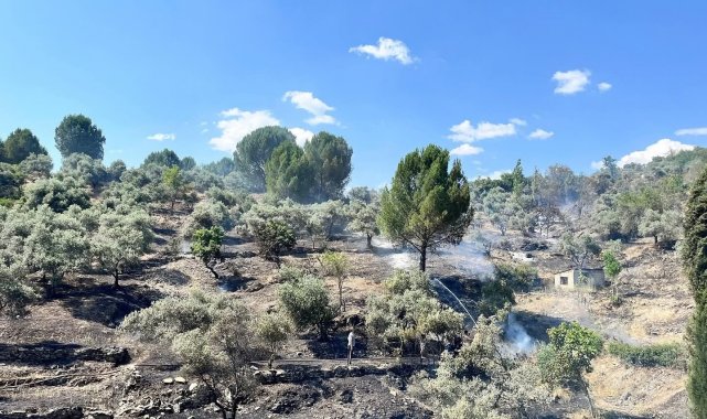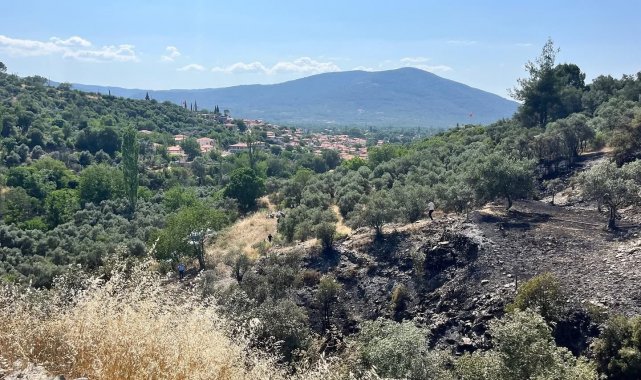 Muğla'nın Menteşesinde zeytinlik alanda çıkan yangın, ekiplerin havadan ve karadan yaptığı hızlı müdahale ile kontrol altına alındı.