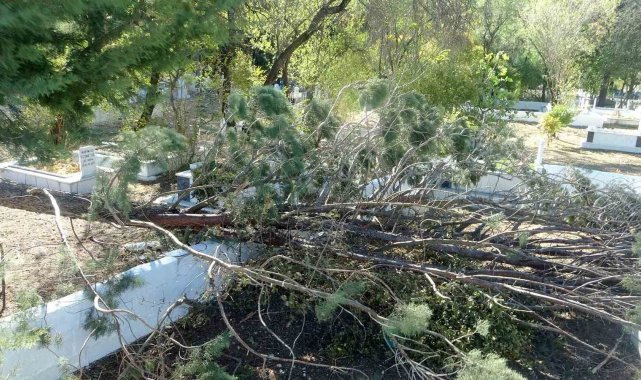 Menteşe'de fırtına minareyi yıktı, ağaçları söktü