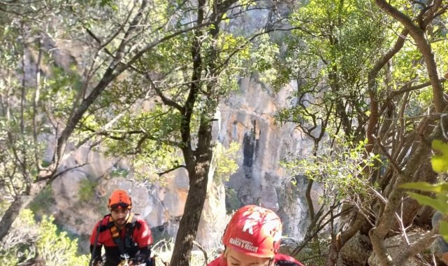 Muğla'nın menteşe ilçesinde bir kanyondaki kayalıklarda mahsur kalan keçi kurtarıldı.