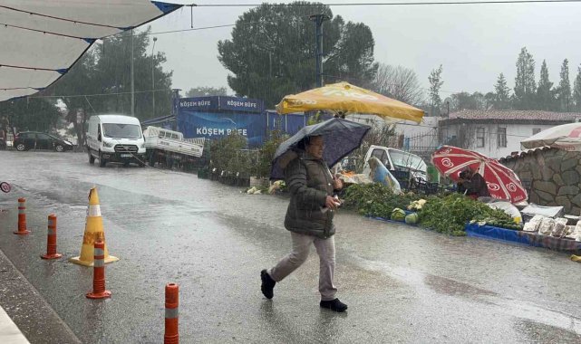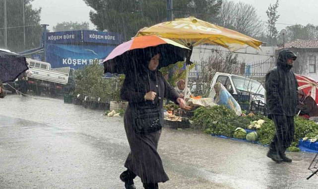 Muğla'nın Menteşe ilçesinde sabah saatlerinden itibaren etkili olan şiddetli sağanak yağış ve fırtına, Perşembe Pazarı'nda vatandaş ve esnafa zor anlar yaşatıyor.