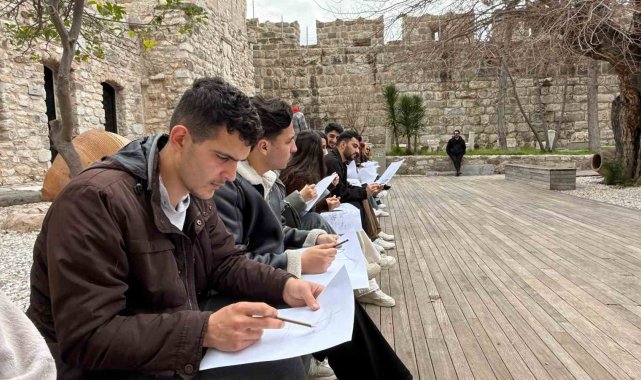 Müze ziyaretinin ardından rotayı Bodrum Kalesi'ne çeviren ekip, kalenin mimari yapısı ve stratejik önemi hakkında bilgi aldı. Tarihi dokunun büyüleyici atmosferinde kağıt ve kalemlerine sarılan gençler, sanat eğitmenleri eşliğinde karakalem çizim çalışması gerçekleştirdi.