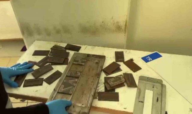 Merdiven altı atölyelere yapılan baskınlarda, plaka presleme makinesi, mühür, 2 plaka boyama silindiri, 3 karekod makinesi, 19 plaka tablası, 136 basılı plaka, 710 boş plaka, 2 bin 100 harf ve rakam kalıbı ile 31 uyuşturucu hap ele geçirildi.