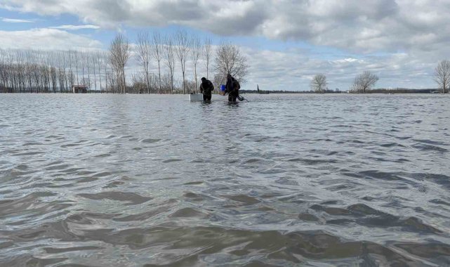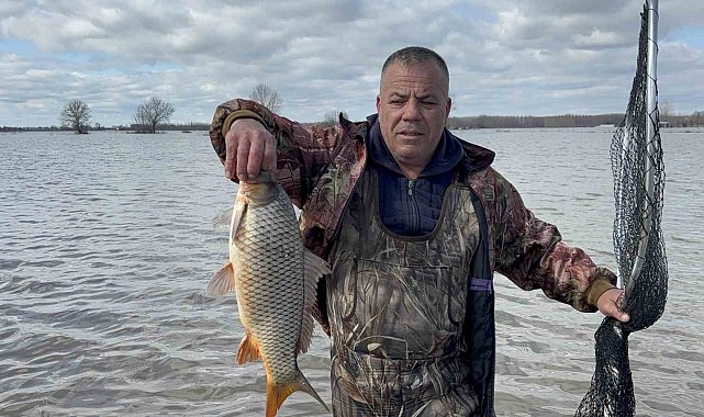 Meriç'in taşması sonrası tarlada sazan yakaladılar