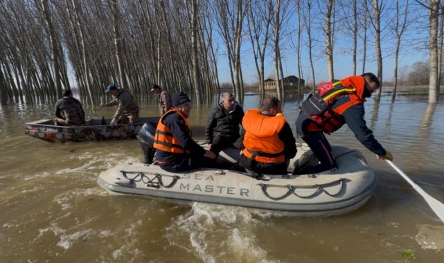 Edirne'de Meriç Nehri'nin yatağından taşması sonucu su baskınlarının yaşandığı Bosnaköy mevkiinde, ev ve çiftliklerinde mahsur kalan vatandaşlar için tahliye operasyonu başlatıldı.