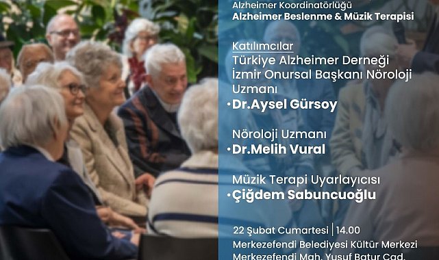 Merkezefendi Belediyesi, Alzheimer hastası vatandaşların ve ailelerinin yaşamını kolaylaştırmak, sosyal hayata katılımını desteklemek amacıyla çalışmalarına devam ediyor. Uluslararası Lions Dernekleri 118-R Yönetim Çevresi Federasyonu Alzheimer Koordinatörlüğü'nce düzenlenen 'Alzheimer Beslenme ve Müzik Terapisi' programı, 22 Şubat Cumartesi günü Merkezefendi Kültür Merkezi'nde gerçekleştirilecek. Saat 14.00'te başlayacak etkinlik, tüm vatandaşların katılımına açık olacak. Program kapsamında, Alzheimer hastalığında beslenmenin önemi ve müzik terapisinin sağladığı faydaları; Türkiye Alzheimer Derneği İzmir Onursal Başkanı Nöroloji Uzmanı Dr. Aysel Gürsoy, Nöroloji Uzmanı Dr. Melih Vural ve Müzik Terapi Uyarlayıcısı Çiğdem Sabuncuoğlu tarafından ele alınacak. Etkinlikte, katılımcılara hastalıkla mücadelede destekleyici yöntemler konusunda bilgi verilecek.