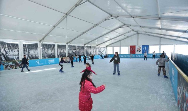 Merkezefendi Belediyesi tarafından Merkezefendi Kültür Merkezi'nin açık otoparkına kurulan Buz Pateni Pisti'ne aileler ve çocukları yoğun ilgi gösteriyor.