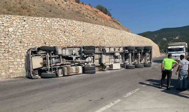 Amasya'da mermer blok yüklü tır, kavşakta yan yatarak yola devrildi. Tırın yaralanan sürücüsü hastaneye kaldırılarak tedavi altına alındı.