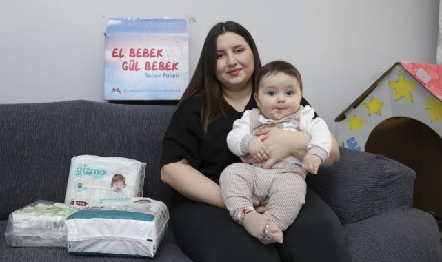 Mersin Büyükşehir Belediyesinin 'El Bebek Gül Bebek' projesi kapsamında, dar gelirli ailelerin 6-12 aylık bebekleri için hazırlanan bakım paketleri 6 ay boyunca her ay ücretsiz olarak ulaştırılıyor.