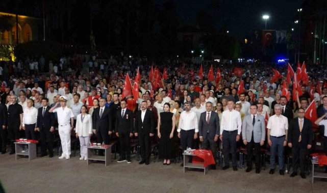 Programda konuşan Mersin Valisi Atilla Toros, meydanı dolduran vatandaşları selamlayarak sözlerine başladı. Vali Toros, "Bizler, istiklalini canından aziz bilen, esareti asla kabul etmeyen, ezelden beri hür yaşamış ve hür yaşayacak bir milletiz. Mazlumun yanında, zalimin karşısında duran bir milletin evlatlarıyız. Gazâ ruhunu hayatının merkezine almış, özgürlüğünden bir an dahi taviz vermemiş, alnı açık, başı dik bir milletiz. Tüm umutların, sönmeye yüz tuttuğu bir dönemde dahi, küllerimizden doğmuş, düşmana, tek yürek olarak karşı koymuşuz. Çanakkale'de boğazı düşmana dar etmiş; 'Çanakkale geçilmez' sözünü tarihe mühürlemişiz. Kurtuluş Savaşı'nda tarihin seyrini değiştiren bir şahlanışla, bir hilâl uğruna yedi cihana meydan okumuşuz. Ve işte o şanlı zaferler zincirinin son halkası, 15 Temmuz Türkiye Zaferi'dir" dedi.