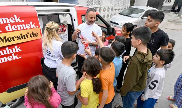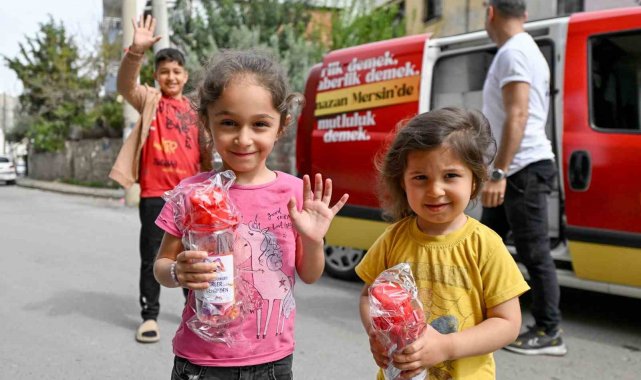 Mersin Büyükşehir Belediyesi, Ramazan Bayramı dolasıyla kent genelinde çocuklara 'suluk ve şeker' dağıttı. Kentin 13 ilçesinde çocuklarla bayramlaşmak için harekete geçen ekipler, 60 bin çocuğa su matarası içinde şeker ulaştırdı.