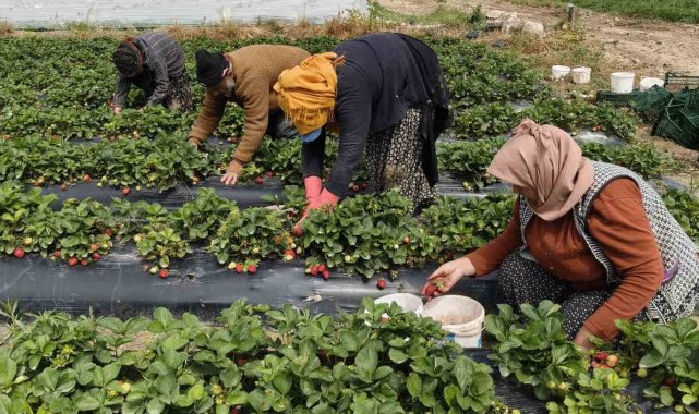 Mersin'de açıkta çilek hasadı başladı: İç pazarda kilogramı 65 ile 75 TL arasında