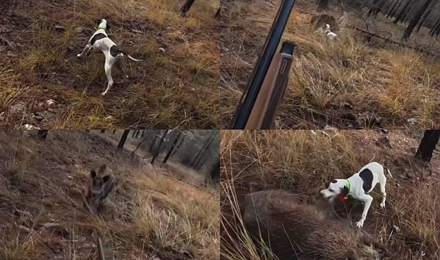 Avcı Öncüt'ün kask kamerasına yansıyan görüntülerde, köpeğin çalılık alanda ferma vermesi, hemen ardından yaban domuzunun aniden ortaya çıkarak koşması ve avcının panik içinde ateş açtığı anlar yer aldı.