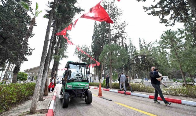 Mersin Büyükşehir Belediyesi, Ramazan Bayramı boyunca mezarlıklarda su, kolonya ve şeker ikramı ile ring hizmeti sunarak kabir ziyaretine gelen vatandaşların yanında oluyor.