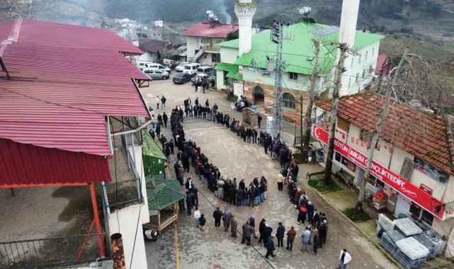 Mersin'in Değirmendere köyünde geleneksel hale gelen bayramlaşma töreninde vatandaşlar uzun kuyruk oluşturdu.