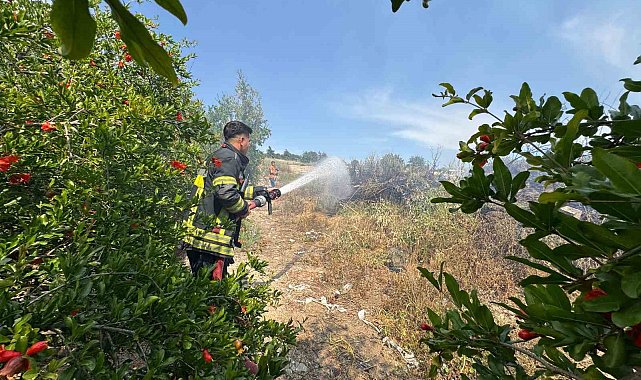 Mersin'de çalılık alanda çıkan yangın, itfaiye ekiplerinin müdahalesiyle nar bahçesine sıçramadan söndürüldü.