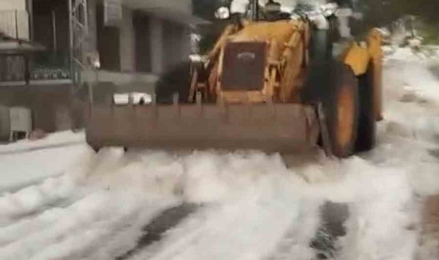 Mersin'in Çamlıyayla ilçesinde dolu yağışı etkili olurken, Çamlıyayla-Tarsus yolu beyaza büründü. Dolu yağışından dolayı bazı köy yollar ulaşıma kapanırken, belediye ekipleri dolu küreme mesaisine çıktı.