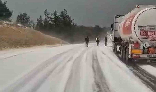 Mersin'in Çamlıyayla ilçesinde dolu yağışı nedeniyle karayolu trafiğe kapandı.