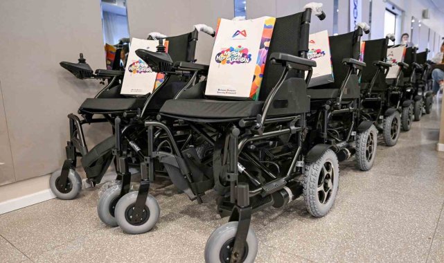 Mersin'de ihtiyaç sahibi 60 engelliye akülü sandalye dağıtıldı.