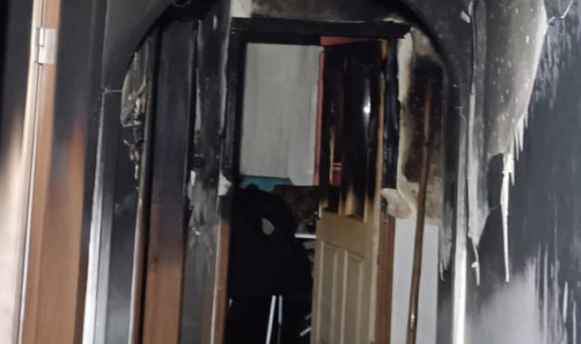 Yangın çıkan daire kullanılamaz hale gelirken polis ekipleri inceleme başlattı.