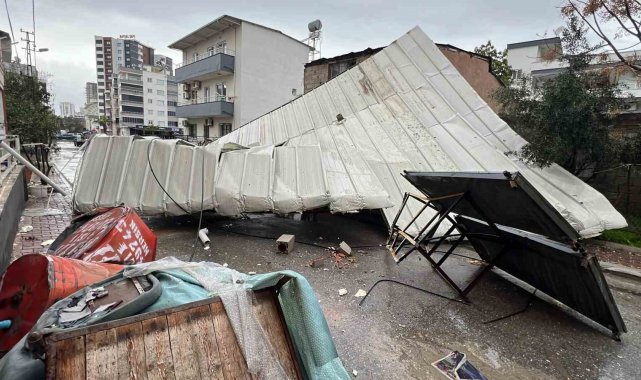 Meteoroloji Genel Müdürlüğü'nün yaptığı yağış ve fırtına uyarısının ardından Mersin'de sabah saatlerinden itibaren etkili olan kuvvetli rüzgar ve sağanak yağış, kent genelinde hayatı olumsuz etkiledi. Toroslar ilçesi Alsancak Mahallesi'nde yol üzerine bir ağaç devrildi. Devrilen ağaç nedeniyle ulaşım bir süre kontrollü sağlandı. Aynı ilçenin Demirtaş Mahallesi'nde ise 2 katlı bir binanın üst çatısına kurulu demir konstrüksiyon çatı, şiddetli rüzgarın etkisiyle yerinden koparak yola savruldu. Olayın ardından çevrede güvenlik önlemi alındı.