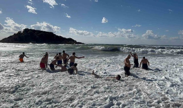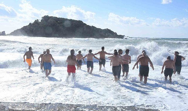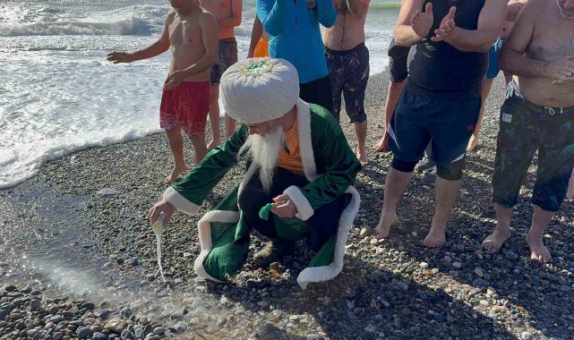 Mersin'in Bozyazı ilçesinde her yıl olduğu gibi bu sene de geleneği sürdüren yöre sakinleri 2026 yılının ilk gününde etkili olan rüzgar ve dalgalara rağmen denize girdi. Temsili Nasreddin Hoca ise denize 'tutarsa yoğurt, tutmazsa tuzlu ayran' olur diyerek yoğurt mayaladı.