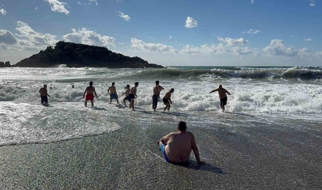 Mersin'de gelenek bozulmadı, yeni yılın ilk gününde denize girdiler