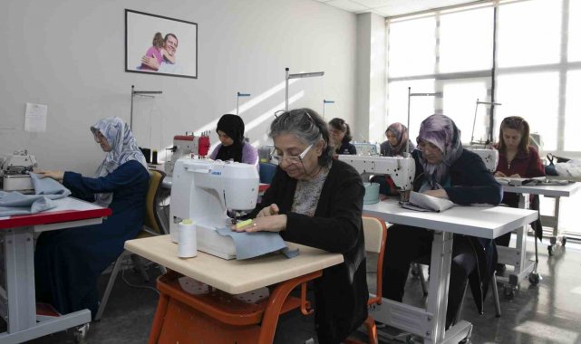 MERCEK'in giyim atölyeleri, aynı zamanda sosyal dayanışmaya da katkı sunuyor. Kursiyerler, belediye tarafından sağlanan kumaşlarla 5-13 yaş arası çocuklar için kıyafetler dikerek Kıyafet Evine destek oluyor.