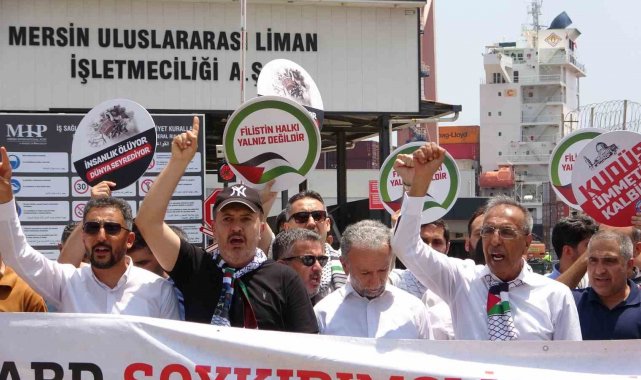 İsrail'in 7 Ekim 2023'te başlattığı Gazze'ye yönelik saldırıları devam ederken, Türkiye ve dünya genelinden gelen tepkiler giderek büyüyor. Açlık, susuzluk ve yoklukla mücadele eden Gazze halkına yardım ulaştırmak amacıyla 1 Haziran 2025 tarihinde yola çıkan ve içerisinde 12 aktivistin bulunduğu 'Madleen' isimli insani yardım gemisine, İsrail donanması tarafından müdahale edildi. Kuşatılan 'Madleen' gemisi için sesler Mersin'den de yükseldi. Mersin Filistin Dayanışma Platformu tarafından 'Madleen' gemisine destek amaçlı Mersin Limanı önünde gösteri düzenlendi. Vatandaşlar ellerinde pankartlar ve Filistin bayrakları ile 'Katil İsrail kahrolsun ABD' sloganları attı.