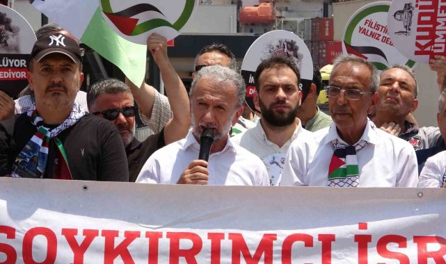 İsrail'in uluslararası sularda Madleen Gemisi'ne saldırısı, insanlığa karşı işlenmiş suçların yanı sıra deniz haydutluğuna da giren bir barbarlık olduğunda ifade eden Boyraz, "Buradan tüm dünyaya sesleniyoruz, böylesine soykırım işleyen haydut İsrail'e karşı uluslararası mevzuat yeniden düzenlenmelidir. Soykırımcı İsrail haydutları bir devlet gibi görülmemelidir. Uluslararası ticari mevzuatın dışında tutulmalıdır. Başta ülkemiz olmak üzere tüm dünya ülkelerinin limanlarından, karasularından ve ticari hayatından uzak tutulmalıdır" diye konuştu.