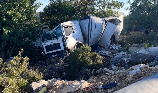 Mersin'in Erdemli ilçesinde kamyon, bariyerleri aşıp şarampolde ağaçlara çarptı. Kazada 2 kişi yaralandı.