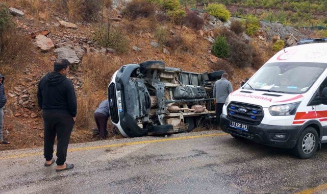 Kaza, ilçeye bağlı Esenpınar Mahallesi Ağlıca mevkiinde meydana geldi. Alınan bilgiye göre, Erdemli istikametine seyreden A.T. yönetimindeki elma yüklü 33 VG 386 plakalı kamyonet, yağışla kayganlaşan yolda sürücüsünün direksiyon hakimiyetini kaybetmesiyle şarampole devrildi. Kazada sürücü ile birlikte araçtaki yolcular S.T. ve H.P. yaralandı. Diğer sürücülerin haber vermesiyle kaza yerine ambulans, itfaiye ve jandarma ekipleri sevk edildi.Yaralılar, ambulanslarla ilçe devlet hastanesi acil servisine kaldırıldı.