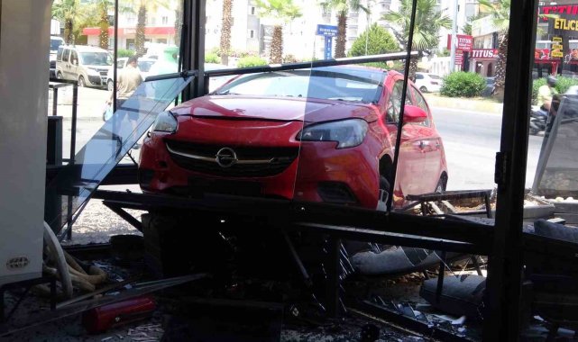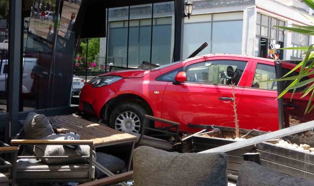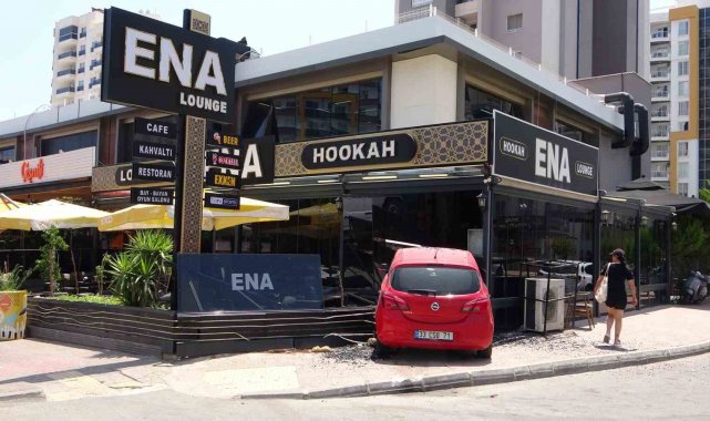 Mersin'de kontrolünü kaybeden kadın sürücü aracıyla kafeye daldı