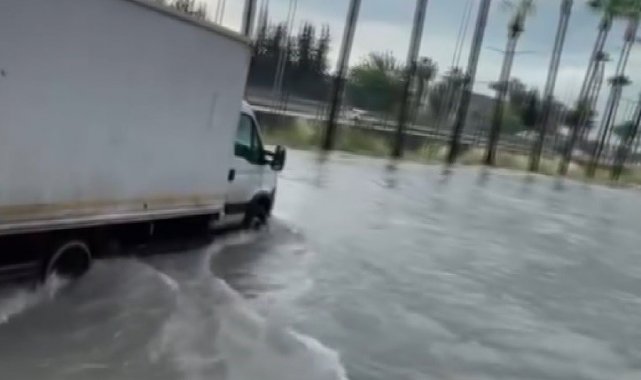 Mersin'in bazı bölgelerinde aniden bastıran kuvvetli yağış dere taşırdı, yolları göle çevirdi. Belirli yerlerde etkili olan dolu da ürünlere de zarar verdi.