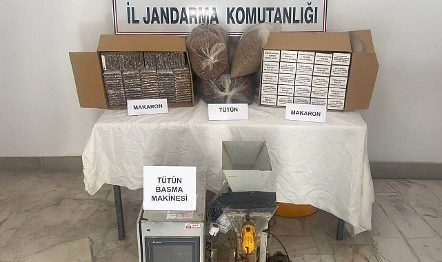 Şüphelilerin ikametlerinde yapılan aramalarda 15 bin 800 adet içi boş bandrolsüz makaron, 3 bin 480 adet içi tütün doldurulmuş makaron, 30 kilogram bandrolsüz tütün ve 1 elektrikli makaron dolum makinesi ele geçirildi.