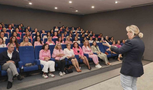 Mersin Büyükşehir Belediyesi, Ekim ayı 'Meme Kanseri Farkındalık Ayı' kapsamında personeline yönelik bilgilendirme etkinliği düzenledi. Uzman doktorların sunum yaptığı programda erken teşhisin önemi vurgulanırken, etkinlik sonunda pembe balonlar gökyüzüne bırakıldı.