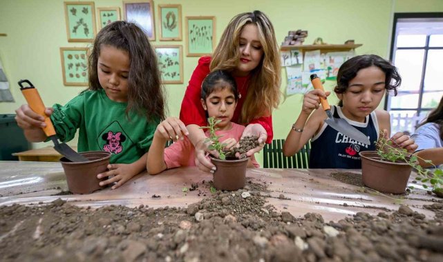 Mersin Büyükşehir Belediyesinin Toroslar Çocuk Kampüsünde düzenlediği 'Doğa Atölyesi'nde minikler ata tohumlarını filizlendiriyor, kompost hazırlıyor ve hobi bahçesinde üretim yaparak doğayla iç içe öğreniyor.
