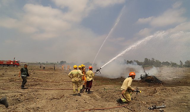 Eğitimlerin ardından yapılan tatbikatla ekiplerin yangına müdahale süreçleri uygulamalı olarak gerçekleştirildi.
