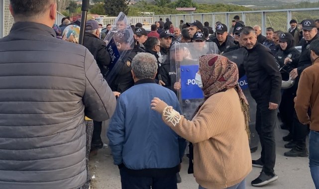 Mersin'de ormanlık alana oluşturulan narenciye bahçelerinin kaldırılması kararına tepki gösteren köylüler, iş makinelerinin önünde oturarak polis ekipleriyle karşı karşıya geldi.