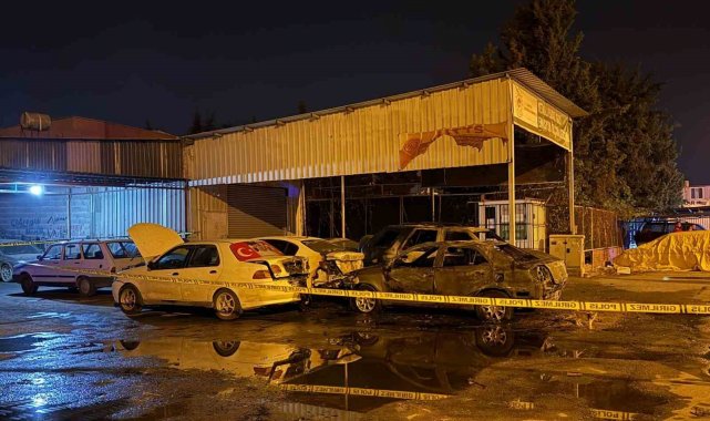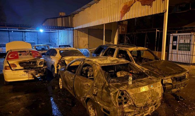 Mersin'in Tarsus ilçesinde tamir için sanayiye götürülen park halindeki 5 araç, kimliği belirsiz bir kişi tarafından