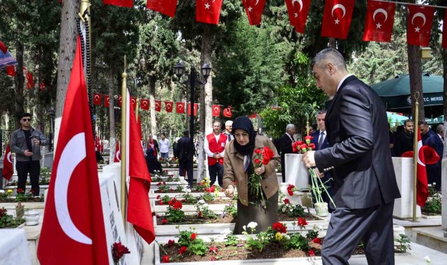 Mersin'de Ramazan Bayramı dolayısıyla şehitliği ziyaret eden il protokolü, şehitlerin kabirlerine karanfil bıraktı.