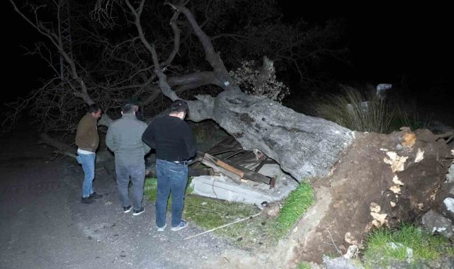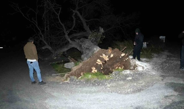 Mersin'de şiddetli rüzgar çatıyı uçurdu, asırlık meşeyi devirdi