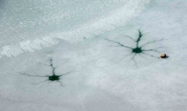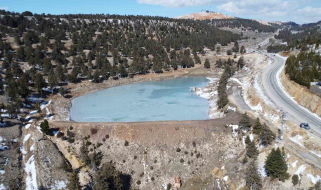 Türkiye'nin sıcak şehirlerinden Mersin'de hava sıcaklığı yüksek rakımlarda sıfırın altına kadar düşünce kuraklık nedeniyle suyu azalan Tozlu Göleti de tamamen dondu.
