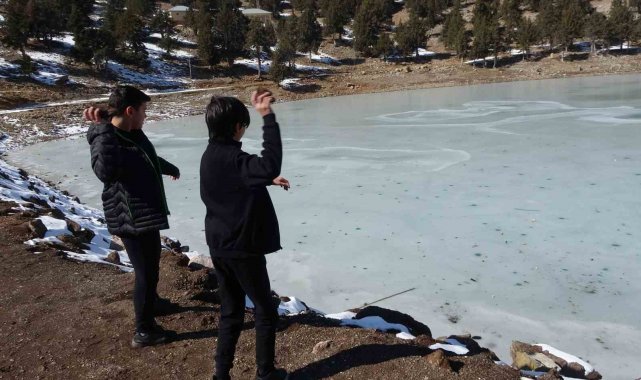 Bölgeye piknik yapmaya gelen vatandaşlardan Mehmet Tartar, kar yağışının ardından soğuk havanın etkili olduğunu belirterek, göletin buz tuttuğunu kaydetti.