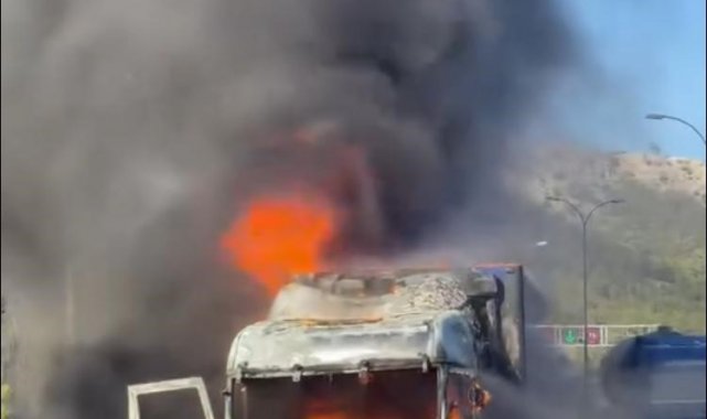 Mersin'de seyir helindeki tırda yangın çıktı, alevlere itfaiye ve orman ekipleri müdahale etti.