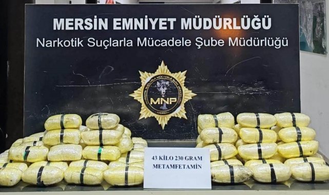 Mersin'de bir tırın gizli bölmelerine zulalanmış halde 43 kilo 720 gram metamfetamin ele geçirildi.