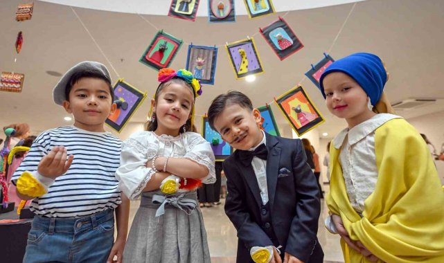 Miniklerin ortaya çıkardığı harika eserler, belediye binasında sergileniyor