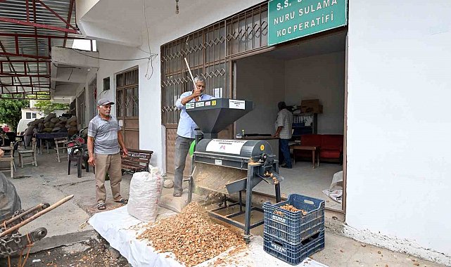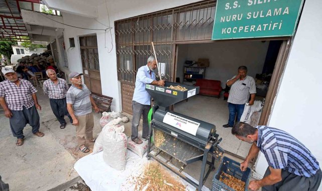 Mersin Büyükşehir Belediyesinin üreticilere sağladığı 'badem kabuk soyma makinesi' desteği, 10-12 kişinin bir günde yapacağı işi 2 saatte tamamlayarak çiftçilere büyük kolaylık sağladı.